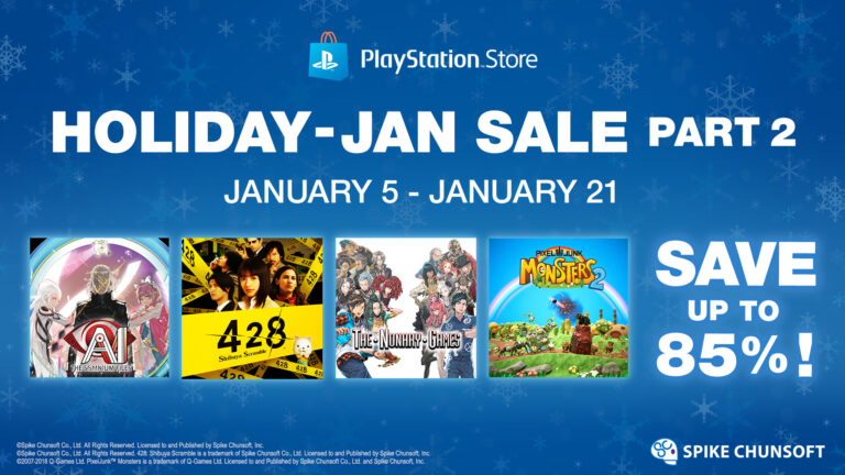 HUNTINGTON BEACH, Calif. (January 5, 2026) - Players can save up to 85% on these Spike Chunsoft, Inc. titles from January 5, 2026 to January 21, 2026, during the Holiday-Jan Sale Part 2 on PlayStation Store. *Visit the PlayStation Store in your region for details.