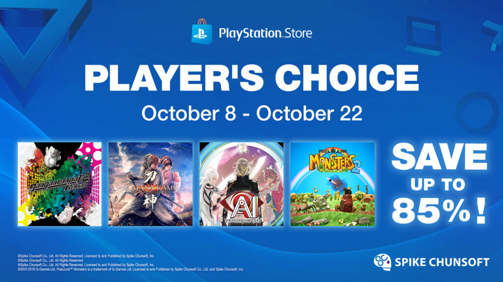 HUNTINGTON BEACH, Calif. (October 8, 2025) - Players can save up to 85% on these Spike Chunsoft, Inc. titles from October 8, 2025 to October 22, 2025, during the Player's Choice Sale on PlayStation Store. *Visit the PlayStation Store in your region for details.